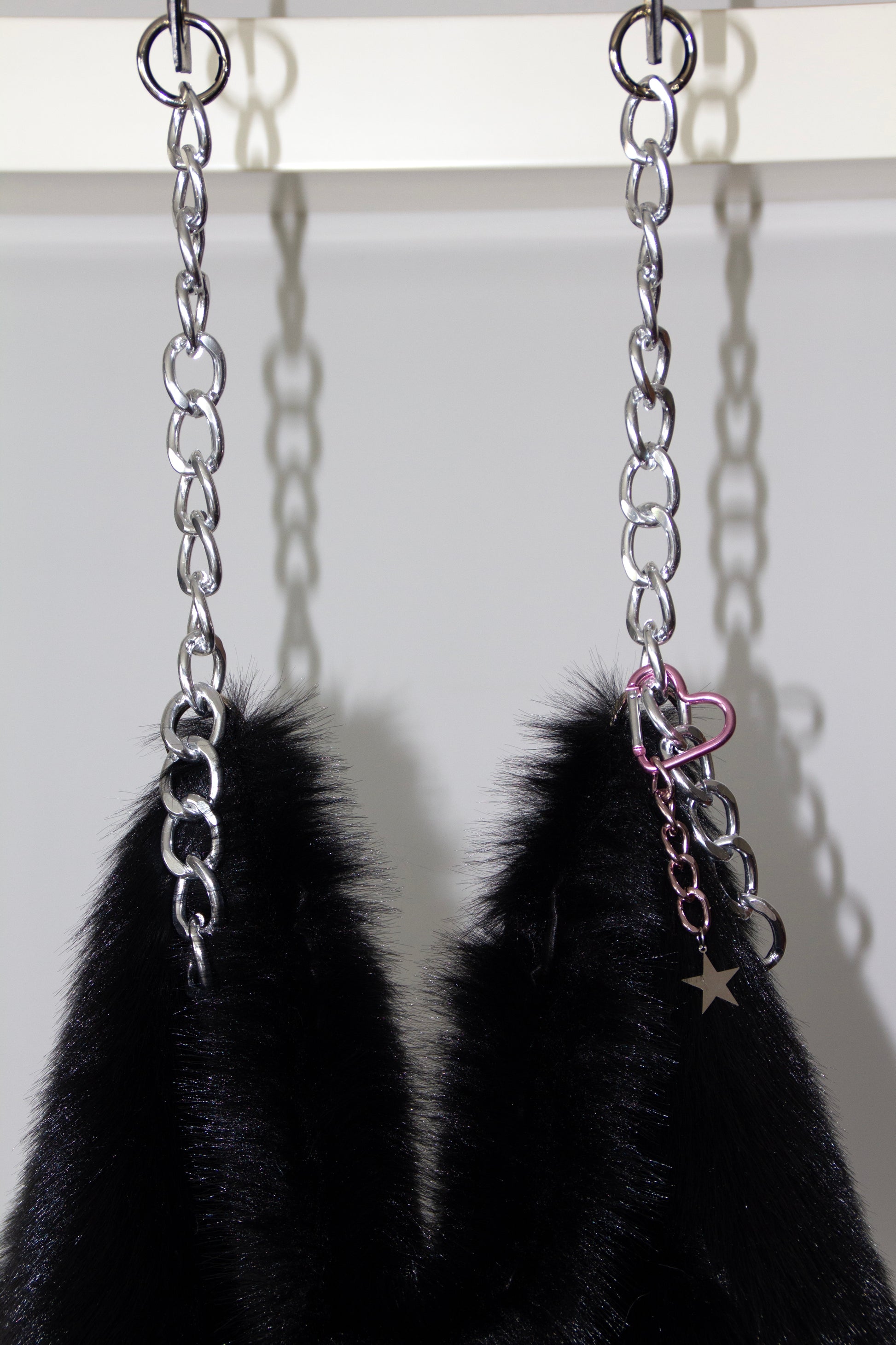 Grey fur bag with chains and metallic details